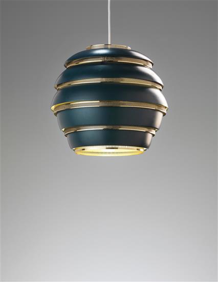 | A black and brass variation of Alvar Aalto's Beehive Lamp |